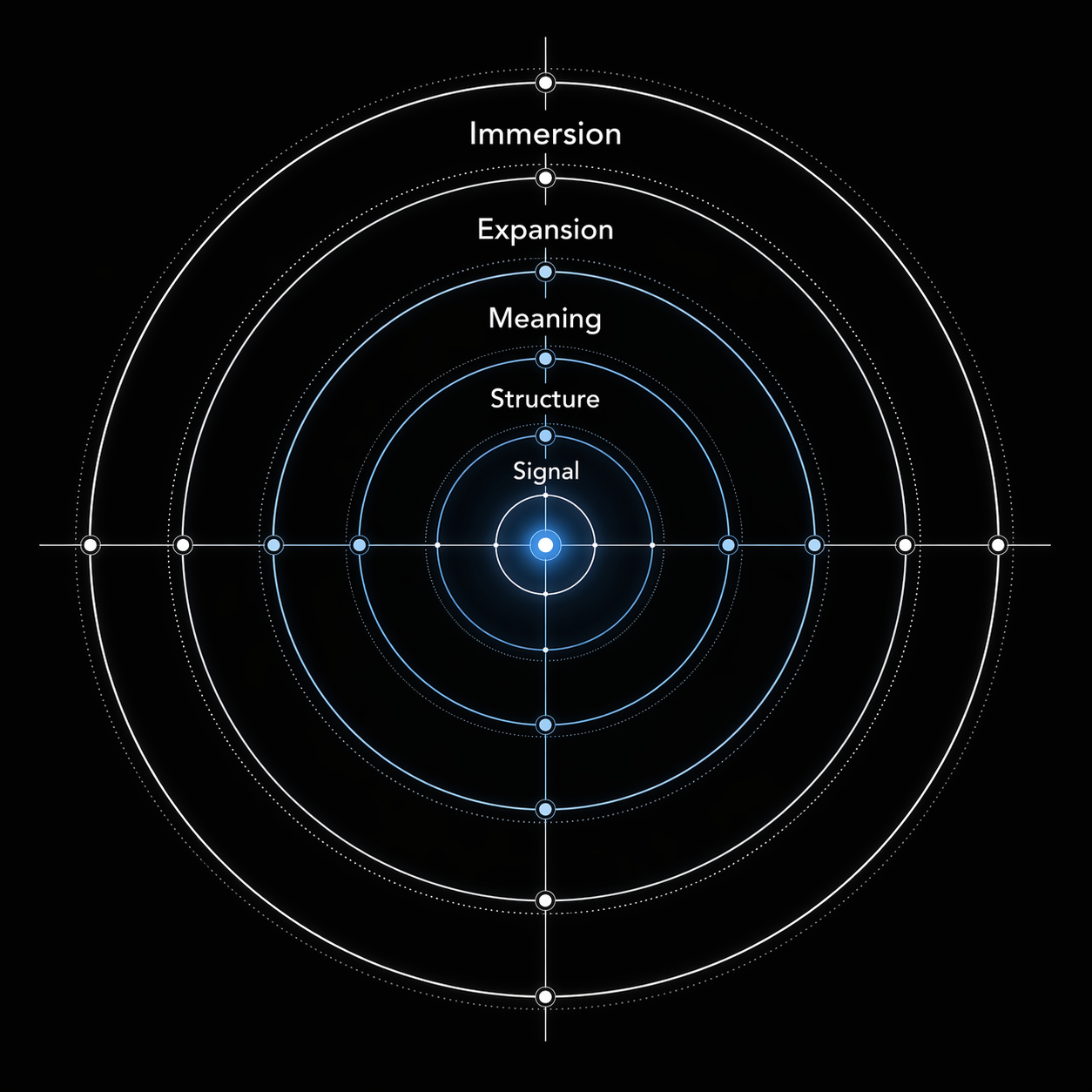 SROW is organized into five communication layers. These layers are functional stages of expression, not decorative formatting choices. Taken together, they separate orientation, structure, meaning, expansion, and application so the page does not ask the reader to do all of that work at once.